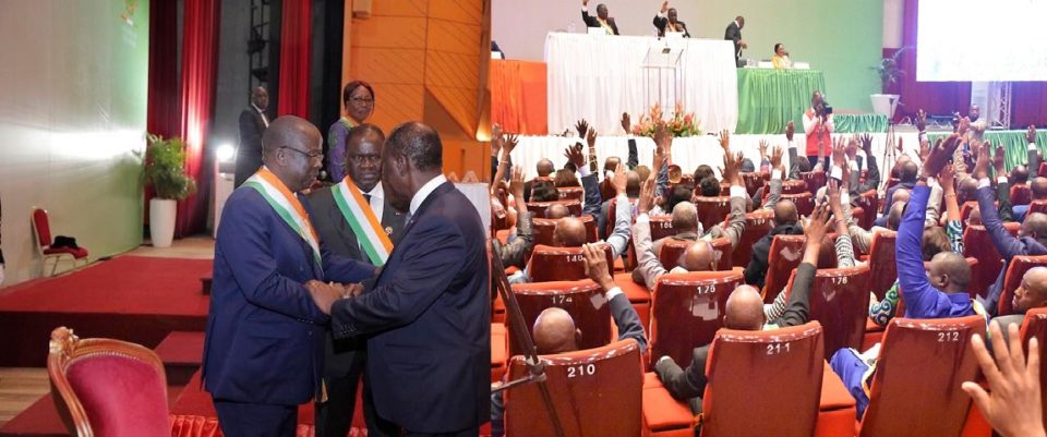 4) 05 mars 2020 : Alassane Ouattara réunit toute la République dans une salle. 99 sénateurs et environ 255 députés (à part les exiles et prisonniers) en Congrès. 22 ministres, 7 Secrétaires d’Etats, Présidents d’Institution, officiers généraux de l’armée, bref pas moins de 2000 personnes (y compris leur délégation respective) se retrouvent à Yamoussoukro. Juste pour leur proposer de modifier la constitution.