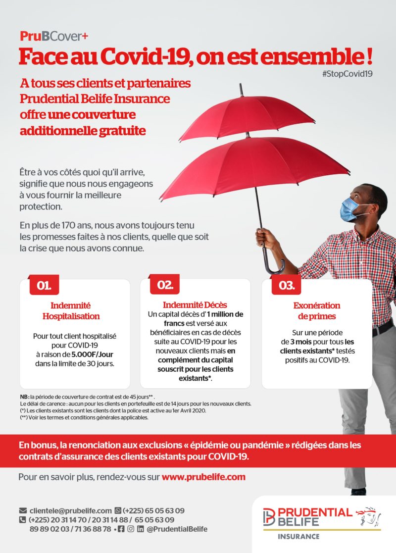 On ne sait jamais. Peut-être qu’il va falloir, pendant qu’il est temps, intégrer ce réseau de ‘’privilégiés’’ en commençant par devenir client Prudential Belife Insurance. Pour mieux se mettre à l’abri face à cette pandémie à Covid19.ici au moins c’est écrit noir sur blanc et c’est bien clair. L’assureur a créé des produits adaptés à la crise sanitaire à coronavirus.