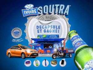 Pendant ce temps, la bataille des capsules retentit fortement avec d’un côté le Jeu promo ‘’Ivoire Soutra’’ (Brassivoire) et  de l’autre  ‘’Capsules Bock’’ (Solibra). Là encore les  »Brassivoiriens » ont devancé les  »disciples » de Pierre Castel. Puisque c’est des jours après le lancement d' »Ivoire Soutra » que l’on a perçu  »Joue et gagne avec moi » , l’appel de Didier Drogba, la star vêtue de ses habits d’Ambassadeur de la marque Bock. Et s’il ne fallait considérer que les voitures flambant neuves arrachées par les heureux gagnants de parts et d’autres, on dira que des centaines de millions ont été déboursés à ce niveau-là.