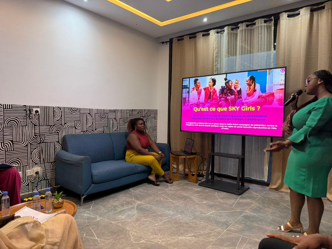 L’objectif était de présenter sa prochaine production audiovisuelle. Il s’agit d’une série intitulée ‘’SKY Stories 3’’ articulée autour de faits inhérents aux réalités des adolescentes. Occasion pour le programme de dévoiler les séquences clés des messages de sensibilisation adressés aux parties prenantes. Pensée comme un outil de changement de comportement à fort impact, la série abordera des thématiques clés telles que les relations saines, la puberté et la confiance en soi.